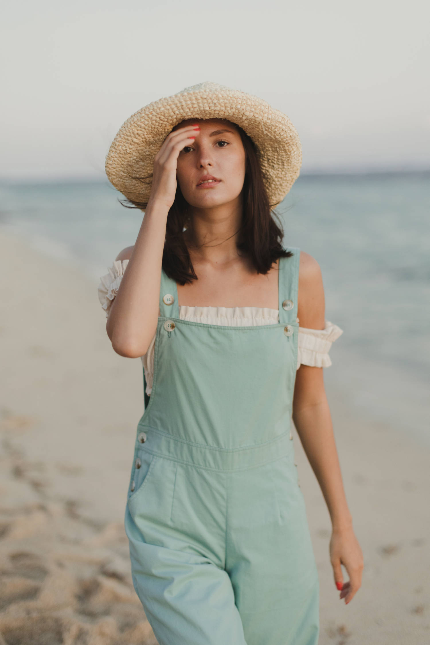 Celana overall atau monyet dari katun twill dengan adjustable tali pundak