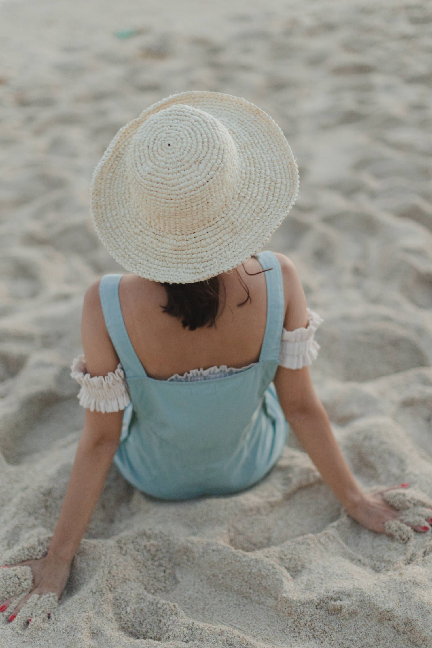 Mini top with gathered fabrics and small ruffles around the bust and both arms..