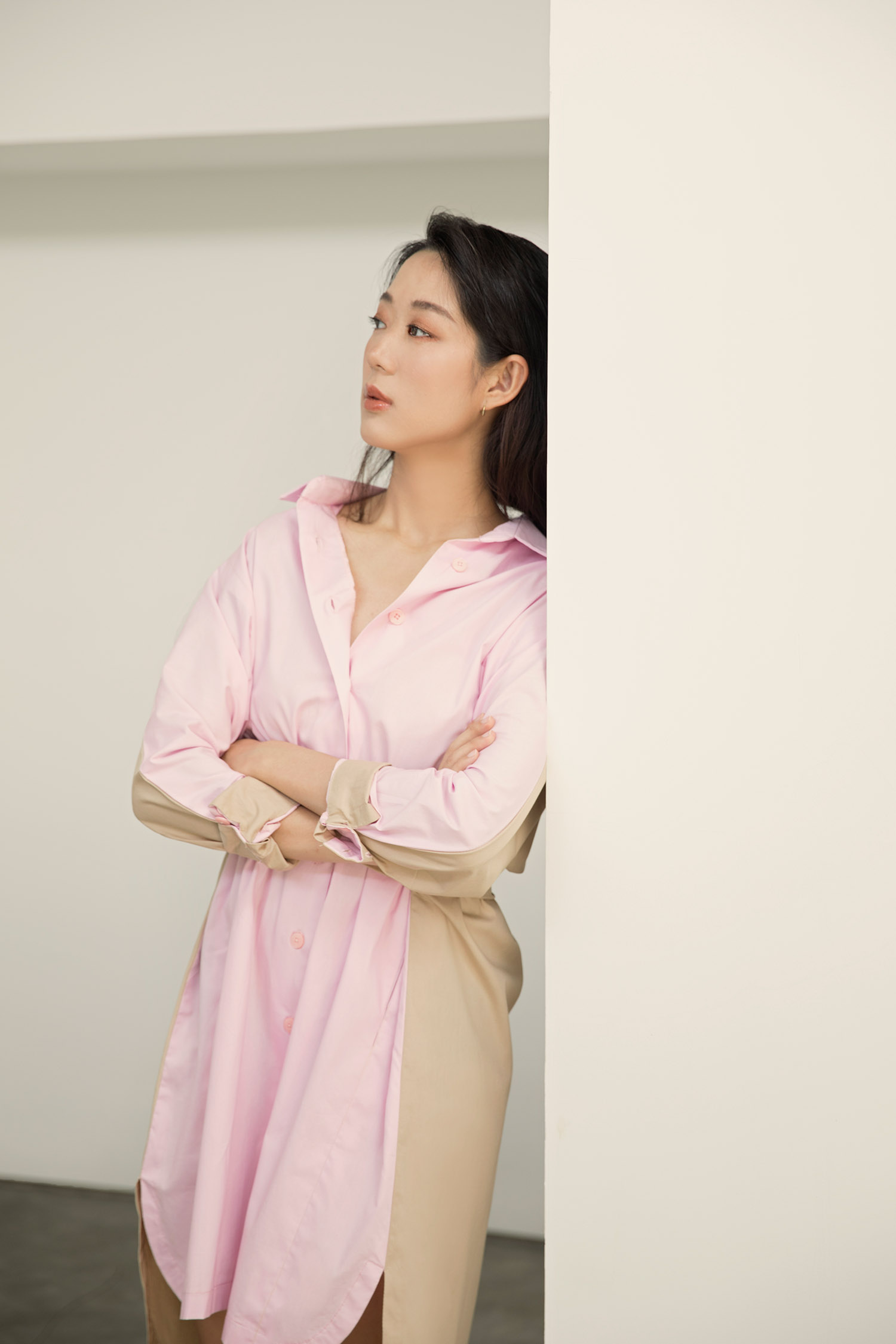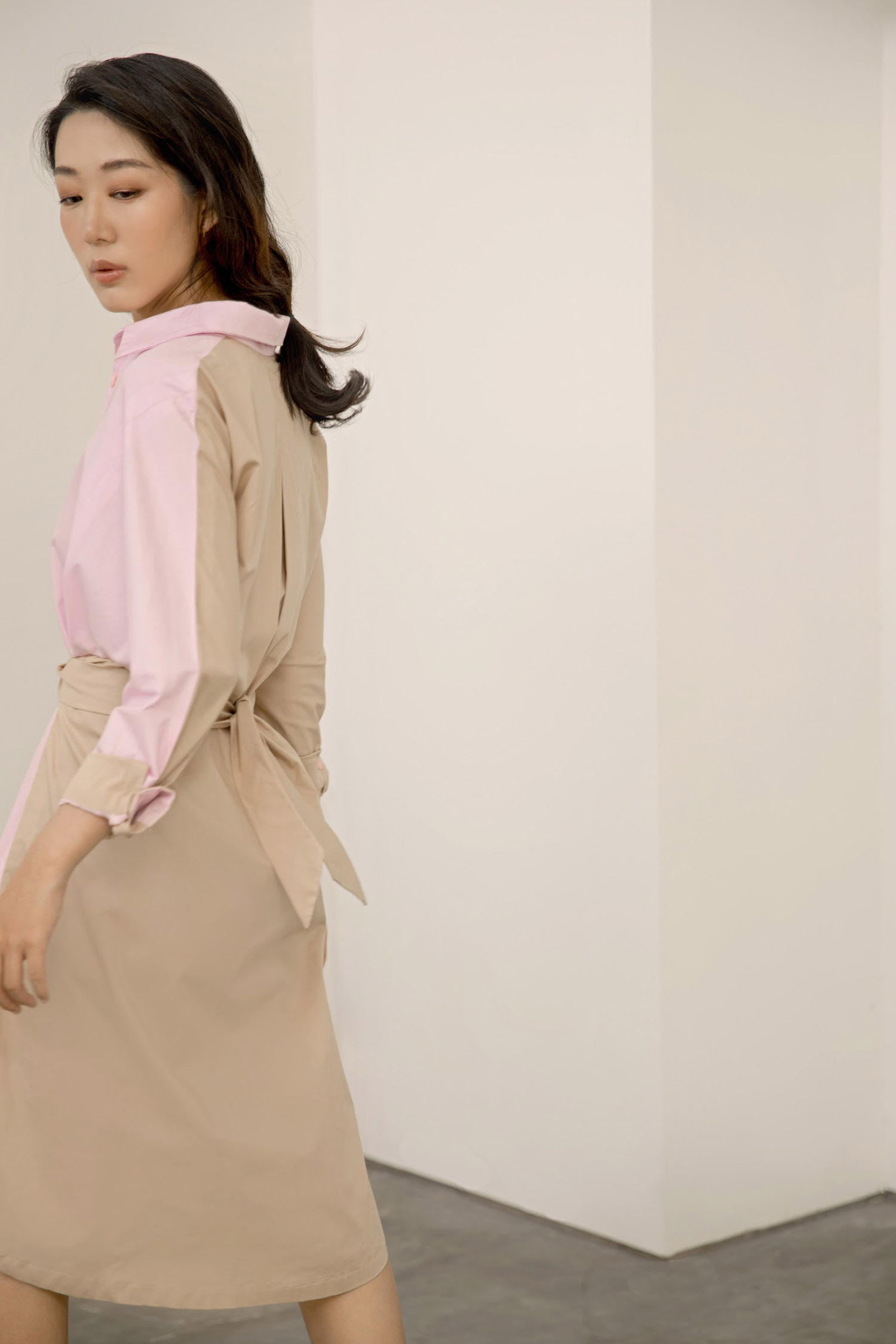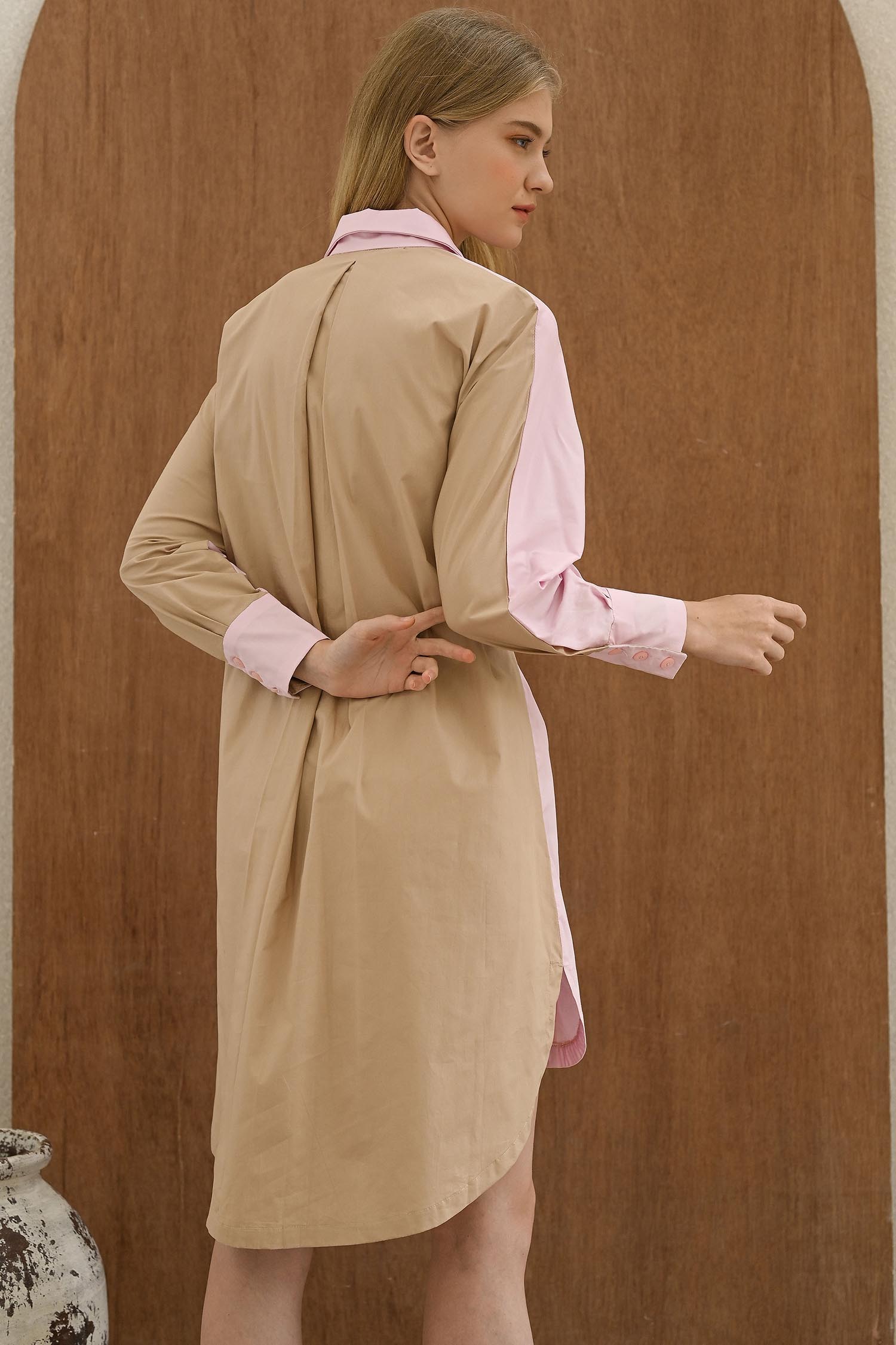 Two tone cotton collar dress with bow