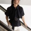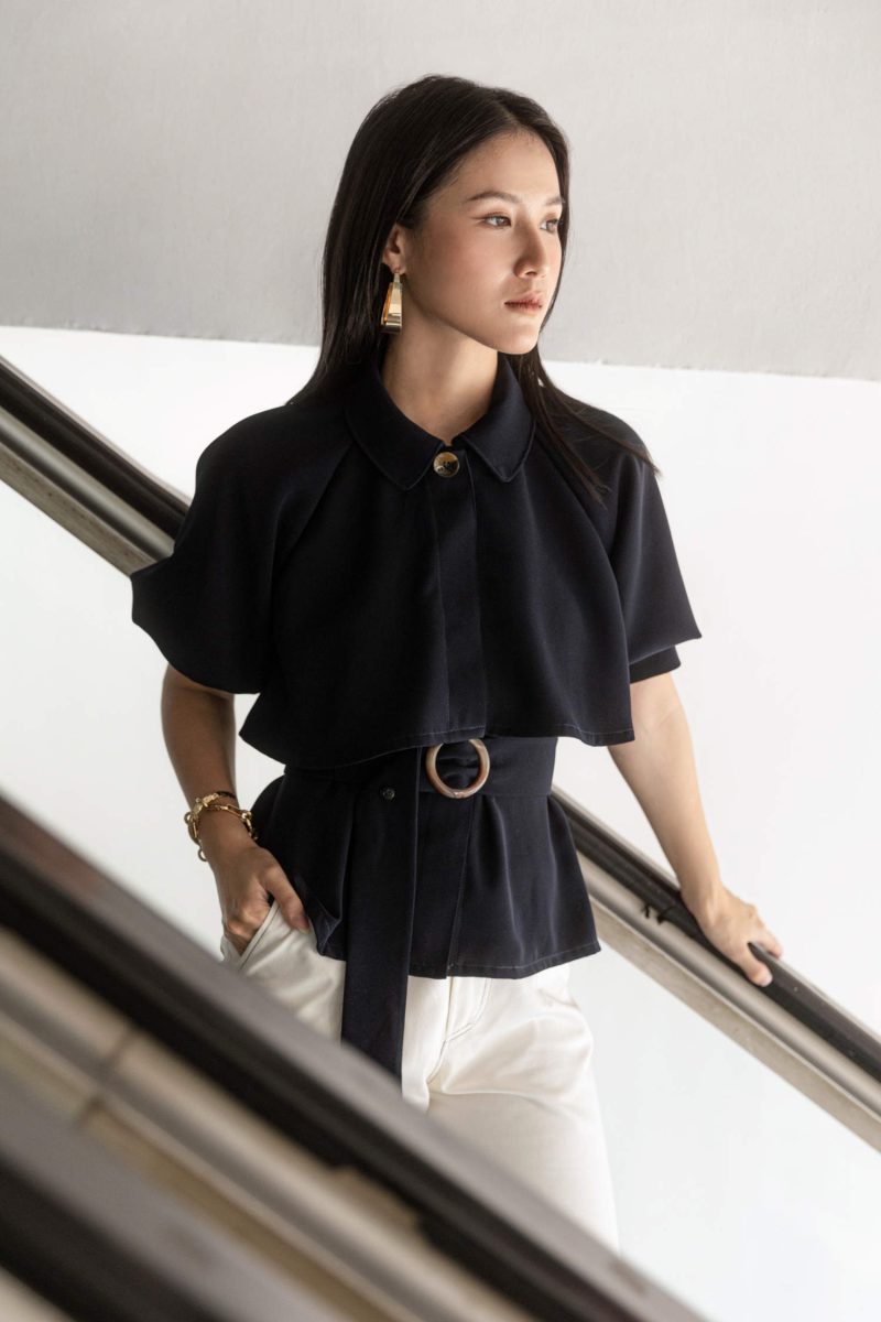 A Trench coat top style, with sleek fabrics and additional belt to keep the waist slim